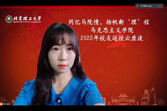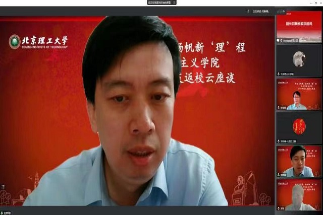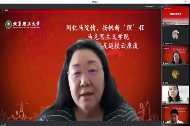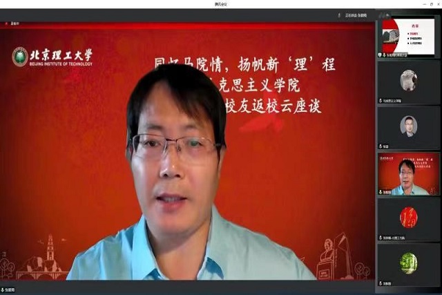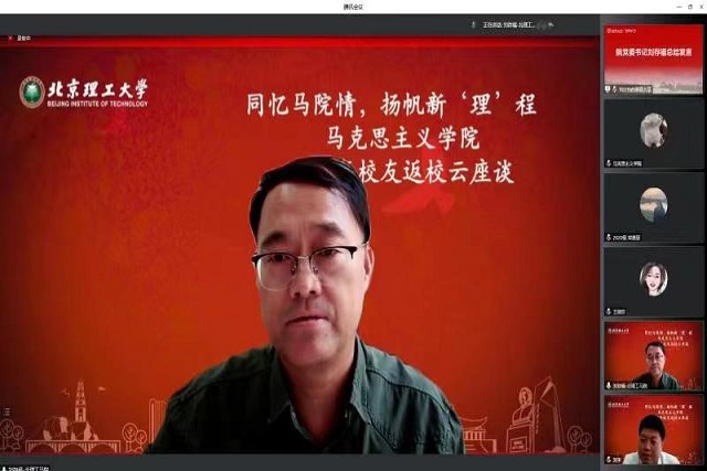 刘存福作总结讲话。他表示,此次校友云返校活动促进了学院与校友之间发展的良性互动。在面对百年未有之大变局之际,学院正面临更高发展要求。一是大力推进思政课改革创新,做好铸魂育人工作;二是打造有北理工特色的一流学科,服务国家战略和社会发展;三是依靠师生、校友,努力建设一流马院、担当马院、幸福马院。他强调学院将进一步关注校友的代际传承,将校友工作与学校人才培养、学科建设、社会服务有机结合,关爱校友成长与发展。